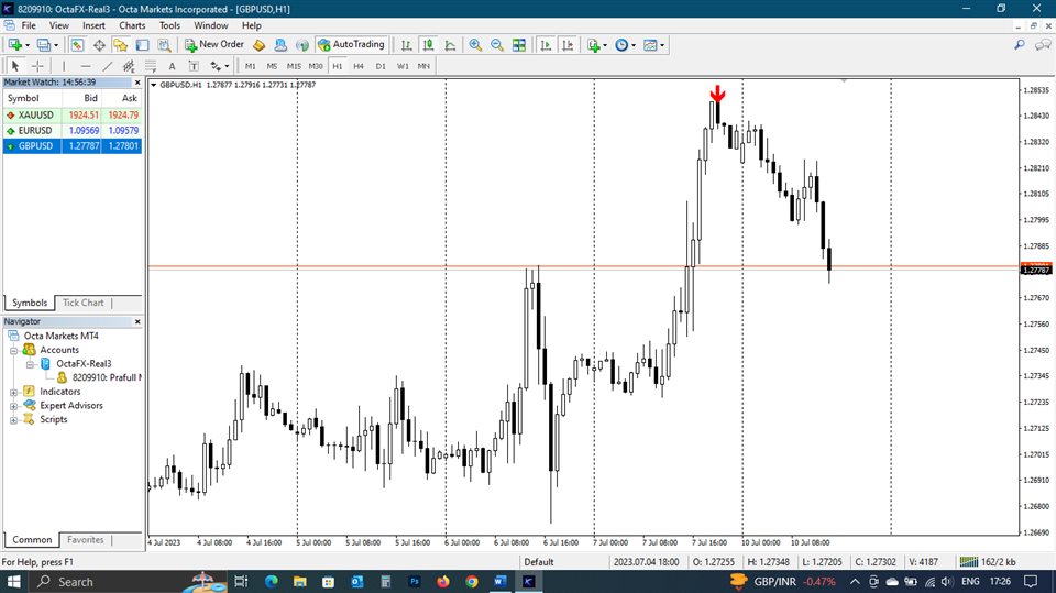 A market structure shift is represented by a level on the chart where the previous trend is broken. If the price is in an uptrend, the market structure shift level is where a lower low is made. If the price is in a downtrend, the market structure shift level is generally going to be at a point where a higher high is made. In both cases, market structure shifts tend to occur on the heels of a displacement.