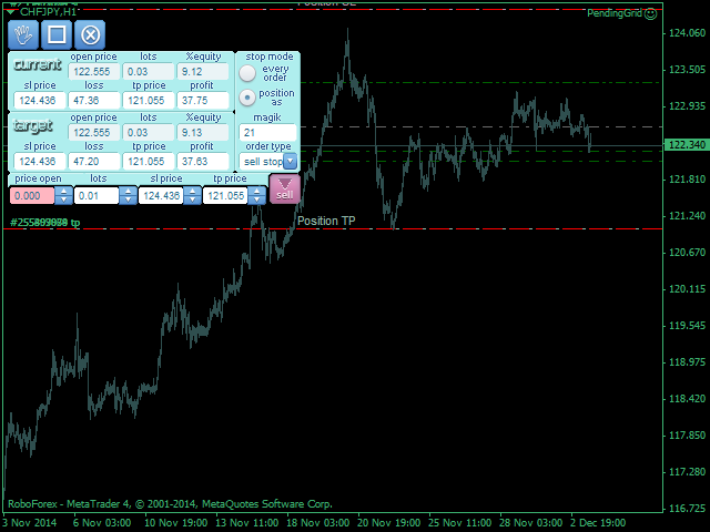 You can quickly add/delete pending order levels as well as add/modify stop levels by a mouse click.