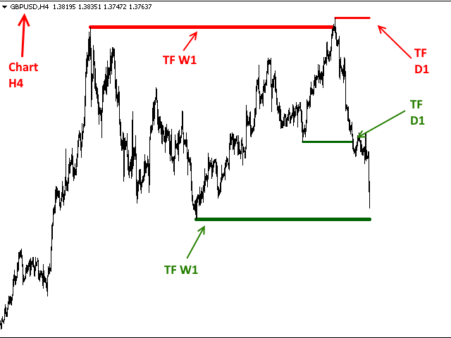 This indicator shows the latest untouched support and resistance as horizontal lines. The indicator can show support/resistance from higher timeframes. With this indicator you can e.g. easily see the support/resistance of the timeframes H4, D1 and W1 on a H1 chart, which can be a big advantage while time your entry on H1.