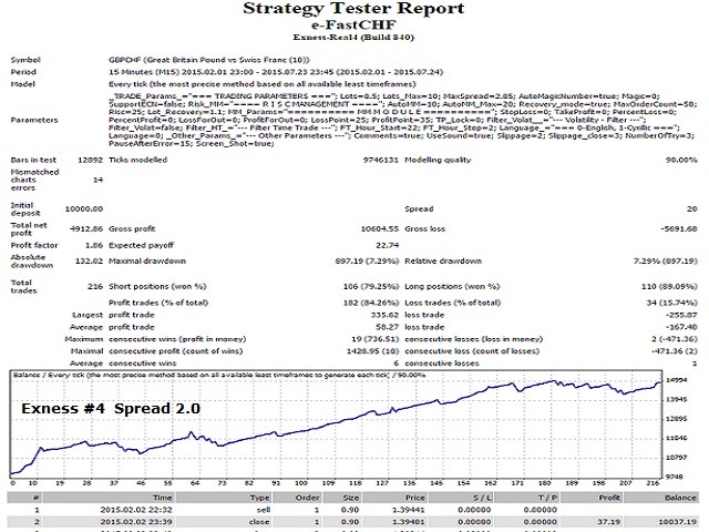 The e-FastCHF EA is developed for GBPCHF. The EA has no trading limitations only on GBPCHF.