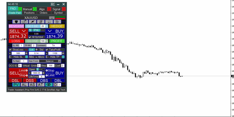 For ZeroRisk Manual Trader, please if you are novice or emotional trader or incapable to respect your trading plan and prop firm rules, or incapable to take a full control of your emotions, just install it in two-step trading mode and let a machine take a full control of your trading activities.Key Features:1. ZeroRisk Trade PAD (ZRP)