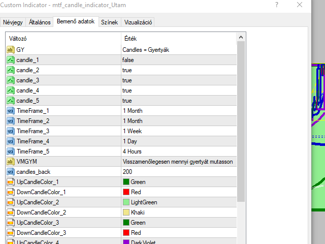 Egy indikátorral. Több idő gyertyájának kirajzoltatása egy charton.