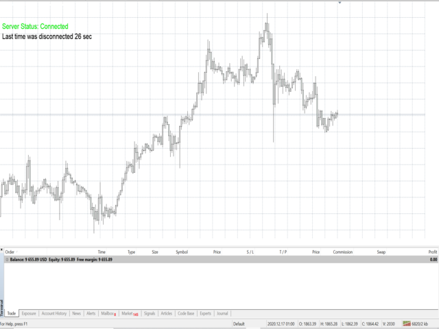 This utility is very useful for trader to get an alert when there is interrupt connection (lost connection) to MT4 server and if there your computer is no internet connection. You will get an alert by sound, email and push notification at the moment your MT4 platform lost it connection.