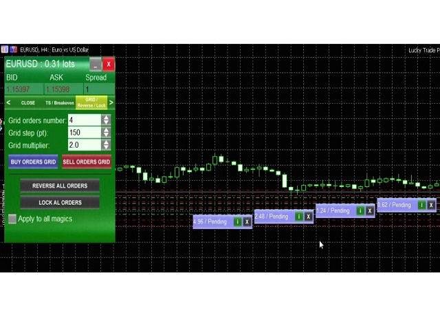 Trading panel for manual trading. Has a fairly wide functionality. Allows you to automatically calculate the order size, open both market and pending orders. It has a wide range of options for closing orders, it is possible to partially close orders, close orders after reaching a certain profit or loss, separately close profitable and unprofitable, buy and sell, as well as pending orders. The panel also contains a simple implementation of a grid of pending orders, reverse and lock functions, trailing stop and breakeven. Also, using this panel, you can view summary information on the results of trading on your account.