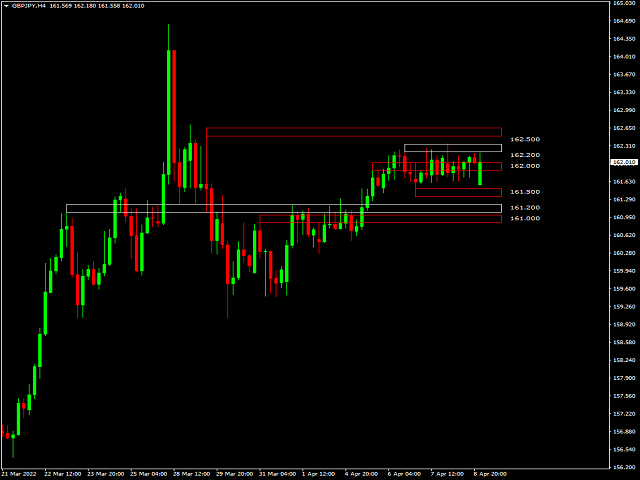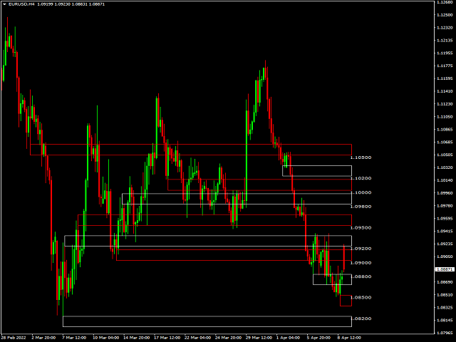 - 方便地在当前价格上下的数字“000、200、500 和 800”或“000、250、500 和 750”处绘制矩形或线条。
