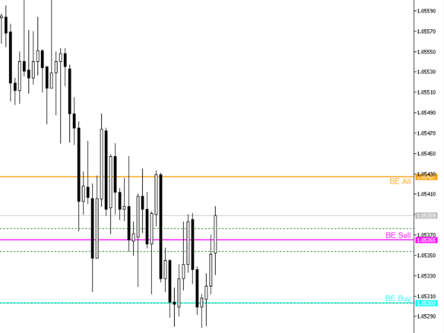 盈虧平衡線對於使用允許同時雙向交易的策略(例如 MMD 方法)的人來說是一個有用的指標。該指標在玩統計模型和在累積和分配區域平均位置時很有用。該指標通過對三組頭寸求和來繪製水平:包含在買入中的頭寸、包含在賣出中的頭寸和包含的所有頭寸。