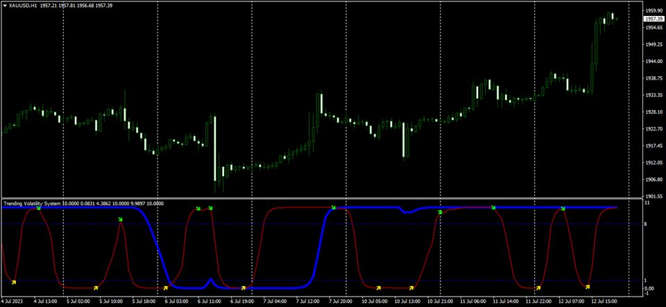 Volatility Trend System - a trading system that gives signals for entries. The volatility system gives linear and point signals in the direction of the trend, as well as signals to exit it, without redrawing and delays.