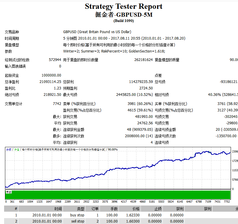 测试结果非常暴利,回测小,是一款不错的EA ,值得推荐,下面是掘金者 ERUUSD M5 GBPUSD M5周期测试报告