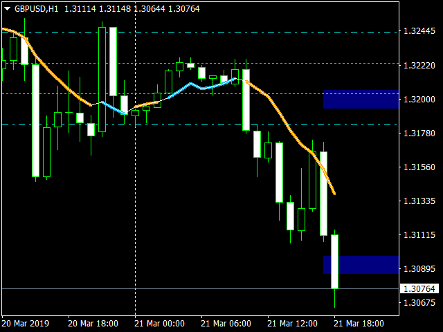 Индикатор предназначен для торговли внутри дня. Строит канал по пробою крайних уровней которого вы можете открывать ордер на покупку или продажу. Во флетовом рынке работа ведётся на отбой от этих уровней. Для фильтрации входов используется цветная гибридная скользящая средняя. Настройки по умолчанию предназначены для терминального времени GMT +3 (подходит для большинства брокеров) и для терминалов с пятизначными котировками. Индикация канала и уровней ADR появляется начиная с установленного в настройках времени. Уровни ADR можно использовать как максимальную цель для получения прибыли.