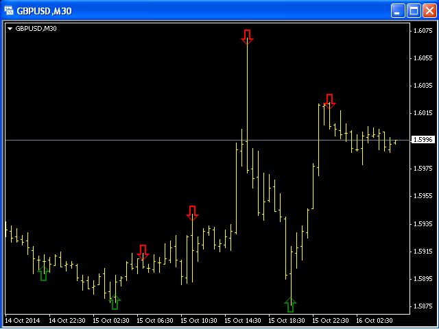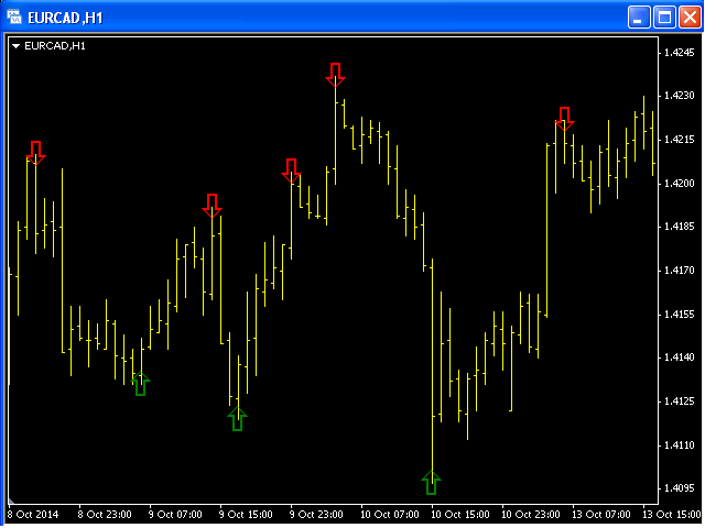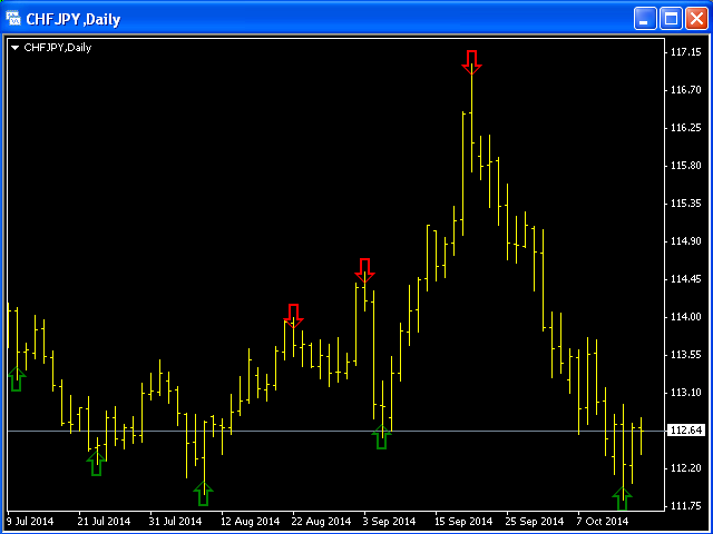- Green arrows indicate the beginning of the Up trend and it will be a good time to open a Long position.