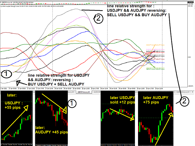 and for the strongest line reversing from upward : you will SELL symbol1 and BUY symbol2